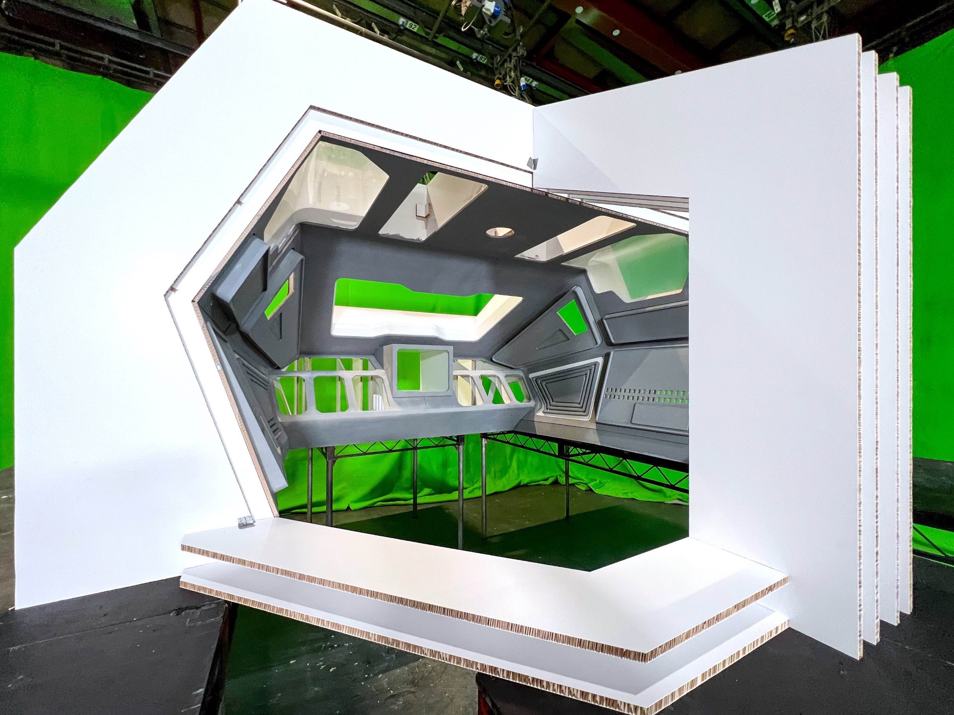 The set for Corblean IV, the main ship in Alien: Romulus. Each set is made from 100% recycled materials and is recycled after use.