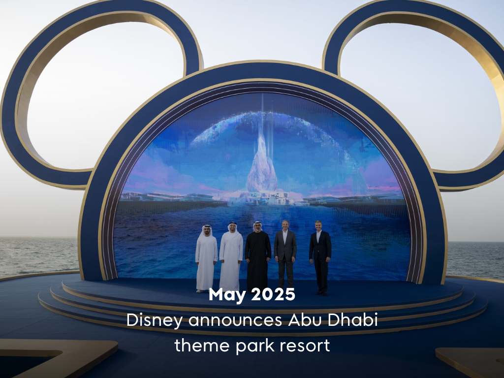 A landmark theme park resort destination announced in Abu Dhabi, making it the seventh Disney theme park resort destination around the world