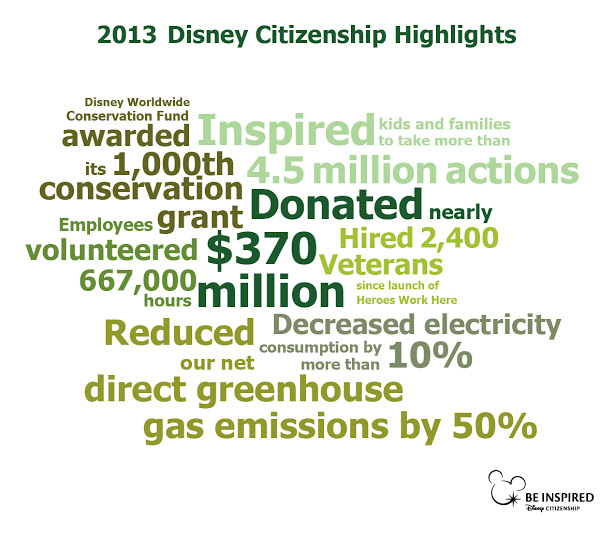 The word cloud above features some of the milestones and achievements from our 2013 Citizenship Performance Summary. It reflects the commitment of everyone at Disney to do the right thing for kids and families.