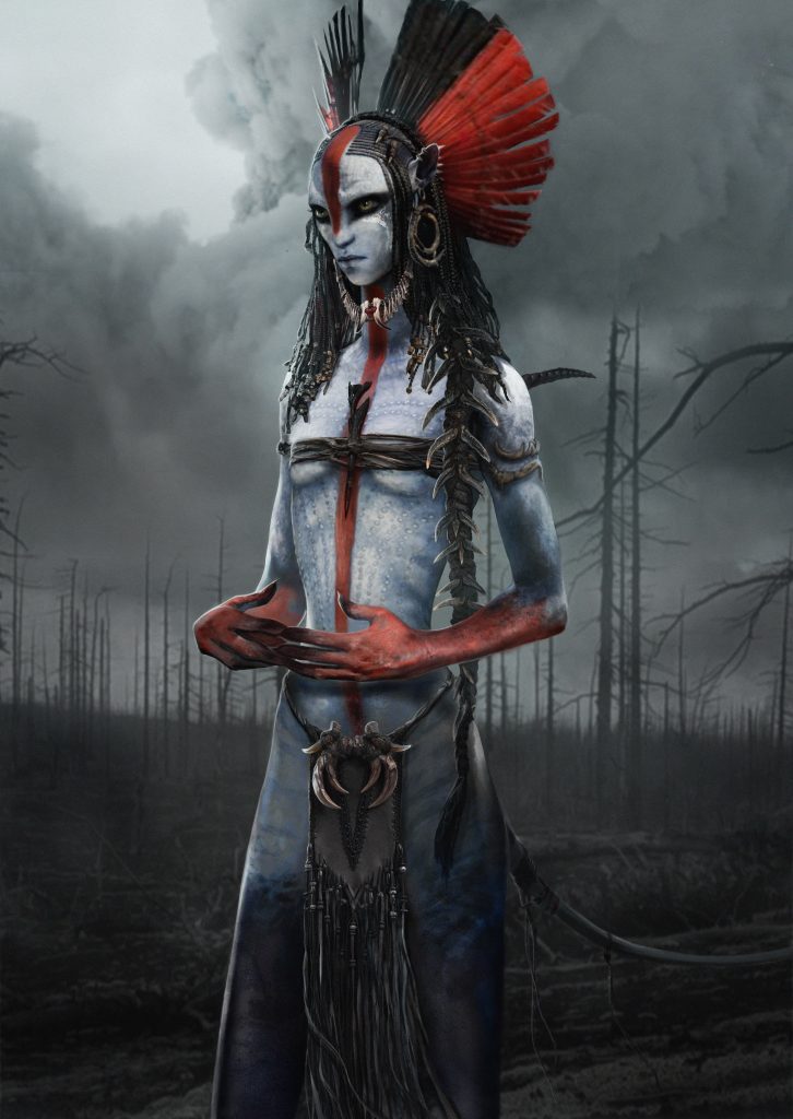 “I knew the two clans had to be remarkably different while still following the same rules of all the clans: they weave, they make their own garments, etc.,” Scott said. “You stay within the framework, so the real fun was getting to customize things based off of their stories.”