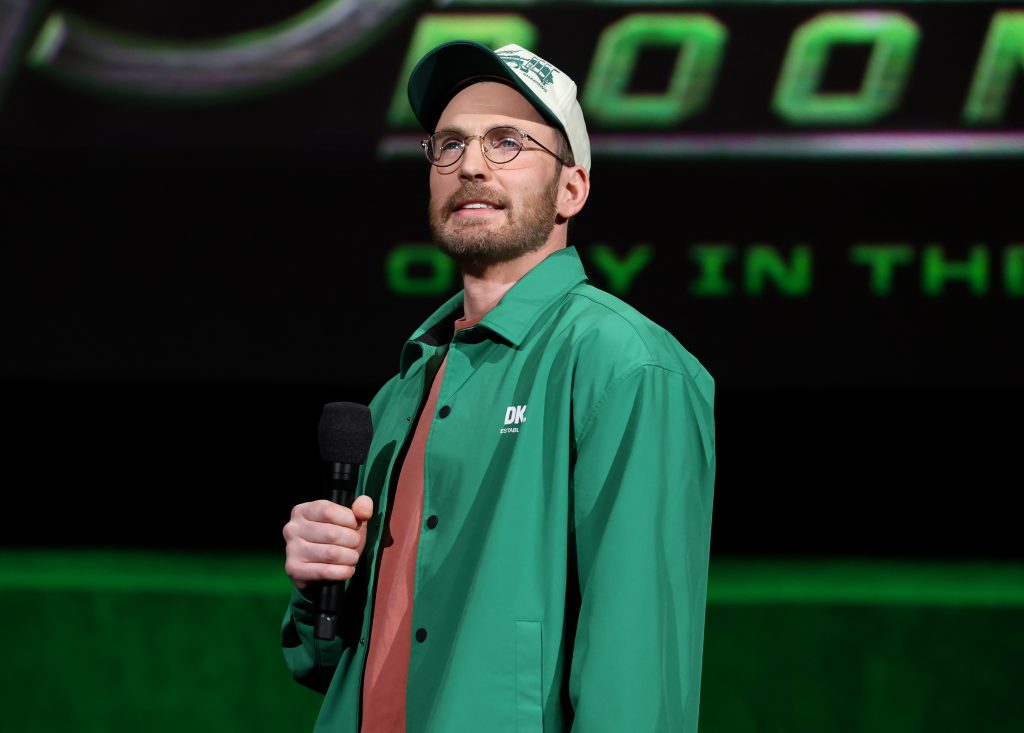 Then, Disney Legend Robert Downey, Jr. — in Doctor Doom’s signature green — made a dramatic entrance from the back of the Dolby Colosseum, much to the delight of the CinemaCon attendees, and progressed to the venue’s stage and screened an exclusive first look at footage from the film, before bringing Steve Rogers himself, Chris Evans, to the stage.