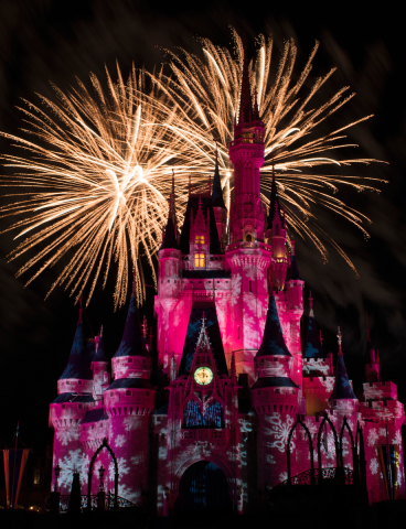 At Walt Disney World, a celebrity narrator tells the story of Christmas with beautiful choral pieces performed by a 50-piece orchestra and large choir. Queen Elsa from Frozen uses her incredible powers to transform Cinderella Castle into a glimmering ice palace for the holidays.