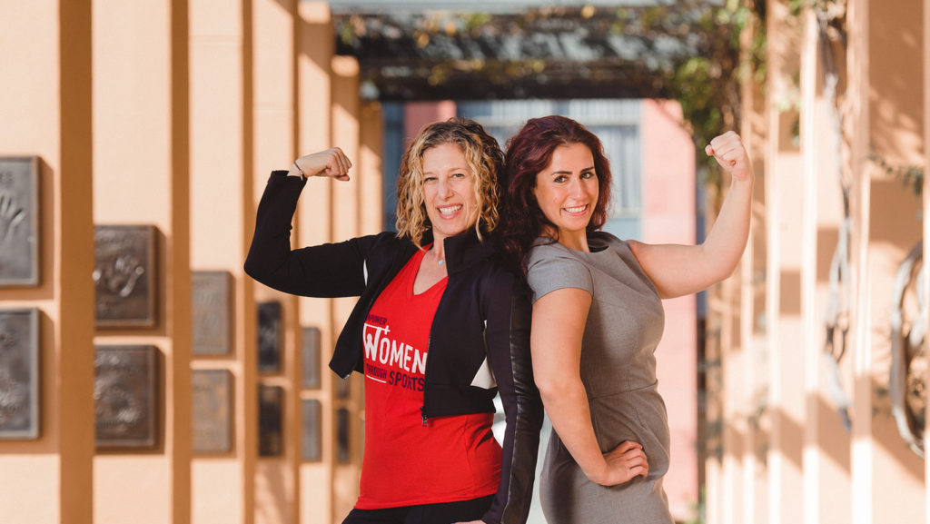 (Pictured L-R: Rima Awni Yacoub and Jill Hotchkiss on The Walt Disney Studios lot in Burbank, California – Photo credit: U.S. Dept. of State in cooperation with University of Tennessee Center for Sport, Peace & Society. Photographer: Jaron Johns)