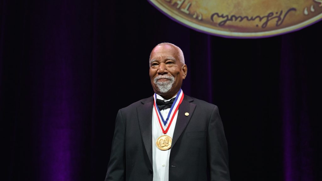For Smoot, getting to attend the dinner, ceremony, and after party with other luminaries was a once-in-a-lifetime experience. A standout moment “was to walk across the stage and have the (very heavy) medal bestowed upon me, topping off the event and making it ‘real’ in some ways,” he says. Smoot adds that another highlight “was that I might become a better role model for young people, especially those who look like me, to consider careers in engineering, the sciences, and invention and have as much fun as I have had in doing so.”