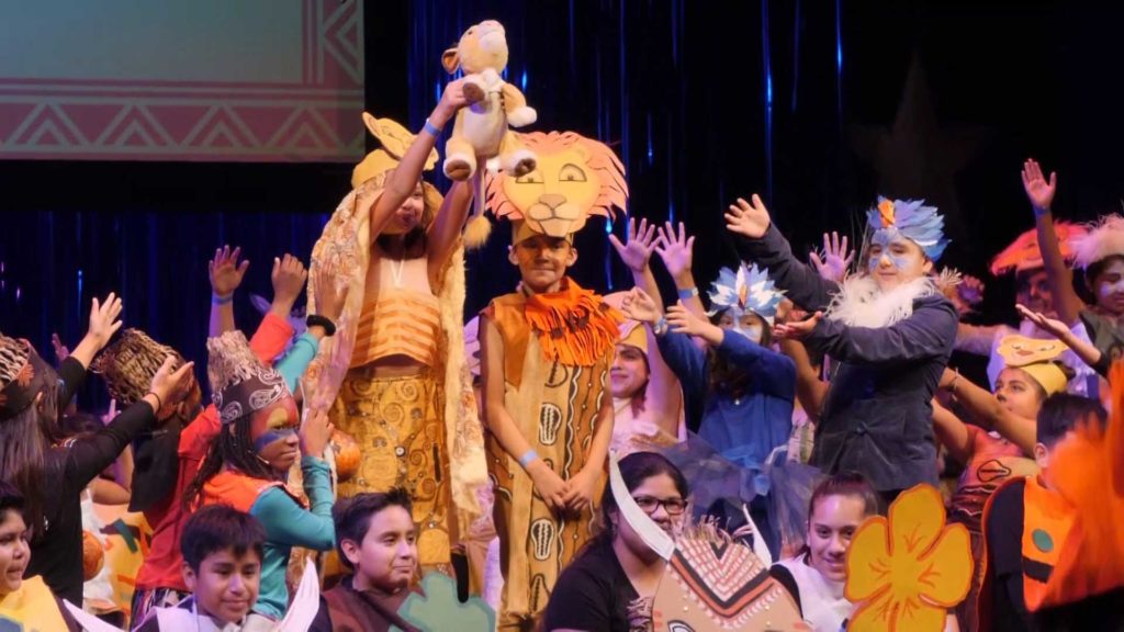 As Mitchell has watched DMIS grow, she has marveled at how each city and theatre company is able to make the program their own. The Las Vegas DMIS program, done in partnership with Smith Center for the Performing Arts, features a number of teaching artists who perform with Cirque du Soleil, giving that city’s choreography an almost acrobatic-like quality; while in Nashville, shows created alongside the Tennessee Performing Arts Center feature musical talent that reflects the world-class music education program offered in the city’s public school system. “One of the things that surprises me most is how you can have two dozen versions of The Lion King take place on school stages around the country, and every single one of them—despite having the same script and the same score and the same plot—is completely unique to that school and that community,” Mitchell says.