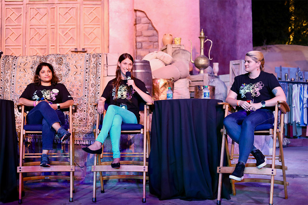On the second evening of the conference, The Walt Disney Company invited more than 300 female technologists to an exclusive after-hours event at Disney’s Hollywood Studios at Walt Disney World Resort. During this special event, they received a special welcome from Latondra Newton, senior vice president and chief diversity officer of The Walt Disney Company; connected with Disney technologists over dinner; visited with Disney characters at photo opportunities; and enjoyed an inspiring panel discussion featuring four technologists from different segments of the Company. The festivities kicked off with an interactive and exciting performance of Indiana Jones Epic Stunt Spectacular! and concluded with attraction experiences in Toy Story Land and Star Wars: Galaxy’s Edge—all of which allowed the attendees to witness Disney technology in action.