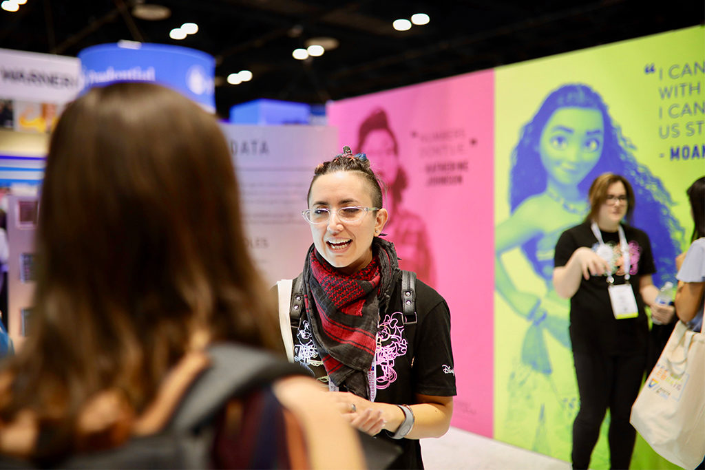 Once inside the booth, GHC attendees had the opportunity to connect with more than 160 Disney technologists and recruiters from across Company segments, including Disney Parks, Experiences and Products; The Walt Disney Studios; Walt Disney Animation Studios; Walt Disney Television Group; The Walt Disney Company (Corporate); Lucasfilm; Industrial Light & Magic; Direct-to-Consumer and International; Disney Streaming Services; and Pixar.