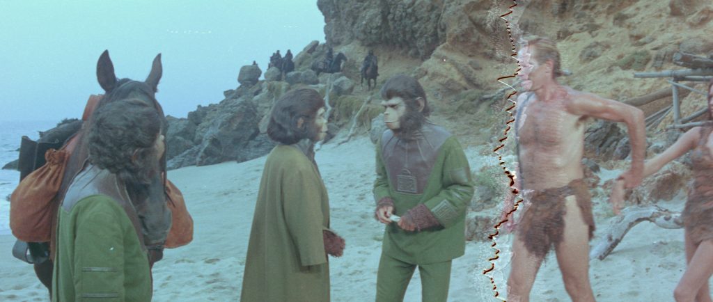 One original negative that needed in-depth work was 20th Century Studio’s Planet of the Apes from 1968. In one scene, the film reel was badly torn and had been glued back together in a way that left orange marks across the image of star Charlton Heston’s body.