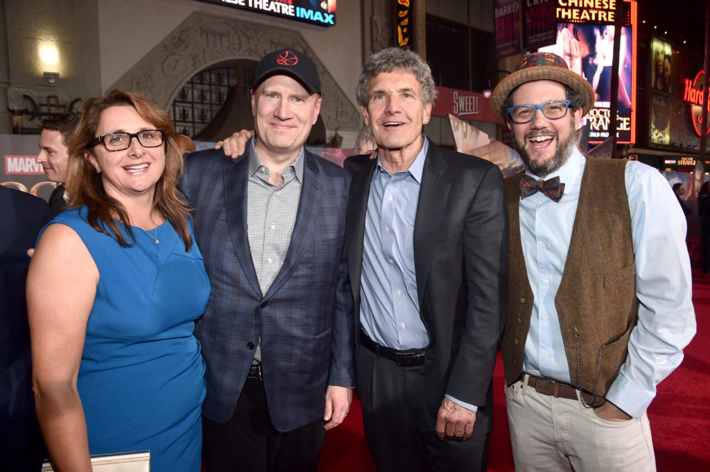 (L-R: Alonso with President of Marvel Studios/producer Kevin Feige, The Walt Disney Studios Chairman Alan Horn and composer Michael Giacchino)