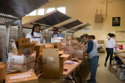 We stood looking at each other in front of the Operation Gratitude Center in Van Nuys, California, on a misty November morning, not sure of what to expect. If you’re not already familiar with the organization, Operation Gratitude annually sends more than 100,000 care packages filled with snacks, entertainment and hand-made items, plus personal letters of appreciation, to Veterans, First Responders, Wounded Warriors, Care Givers and to individually named U.S. Service Members deployed overseas.