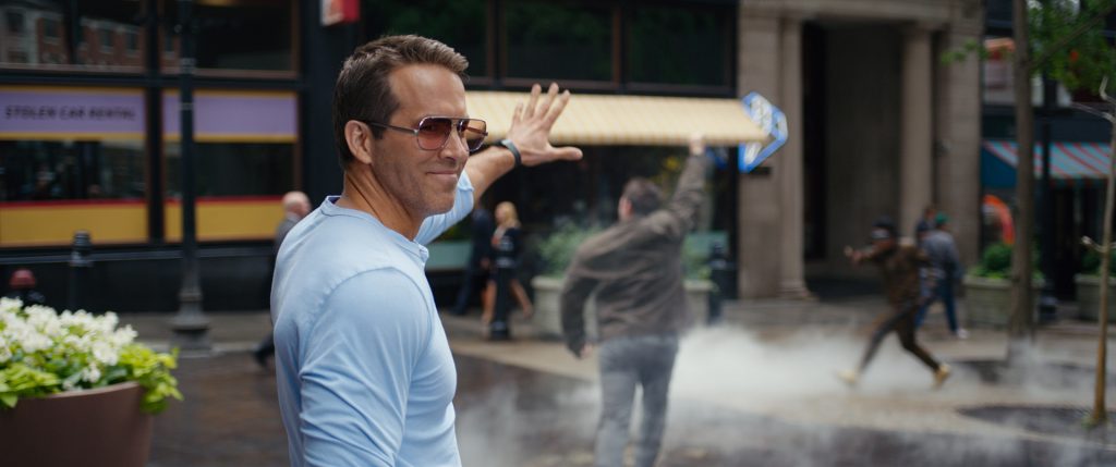 In Free Guy, a bank teller who discovers he is actually a background player in an open-world video game decides to become the hero of his own story… one he rewrites himself. Now in a world where there are no limits, he is determined to be the guy who saves his world his way… before it is too late. Starring Ryan Reynolds, Jodie Comer, Lil Rel Howery, Joe Keery, Utkarsh Ambudkar and Taika Waititi, Free Guy is directed by Shawn Levy from a screenplay by Matt Lieberman and Zak Penn and a story by Lieberman. The film is produced by Ryan Reynolds, p.g.a., Shawn Levy, p.g.a., Sarah Schechter, Greg Berlanti and Adam Kolbrenner with Mary McLaglen, Josh McLaglen, George Dewey, Dan Levine and Michael Riley McGrath serving as executive producers.
