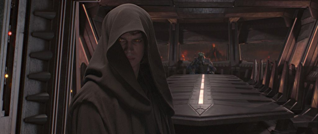 Revenge of the Sith takes place years after the onset of the Clone Wars, when the noble Jedi Knights lead a massive clone army into a galaxy-wide battle against the Separatists. When the sinister Sith unveil a thousand-year-old plot to rule the galaxy, the Republic crumbles and from its ashes rises the evil Galactic Empire. Jedi Hero Anakin Skywalker is seduced by the dark side of the Force to become the Emperor’s new apprentice — Darth Vader. The Jedi are decimated, as Obi-Wan Kenobi and Jedi Master Yoda are forced into hiding.