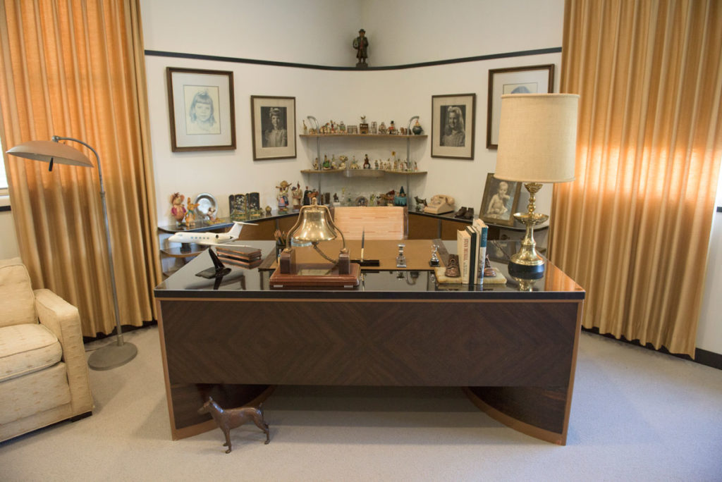 Walt, who first moved into this office in January 1940, was, by the mid 1950s, creating animated classics, live-action films, unforgettable TV series and exploring new forms of entertainment, including a revolutionary concept in family entertainment called Disneyland. Within these walls, Walt not only oversaw a prodigious amount of work, he also welcomed an impressive list of visitors over the years—from composers and artists like Leopold Stokowski, the Sherman brothers and Salvador Dali, to authors, foreign dignitaries and animation pioneers like the Fleischer brothers.