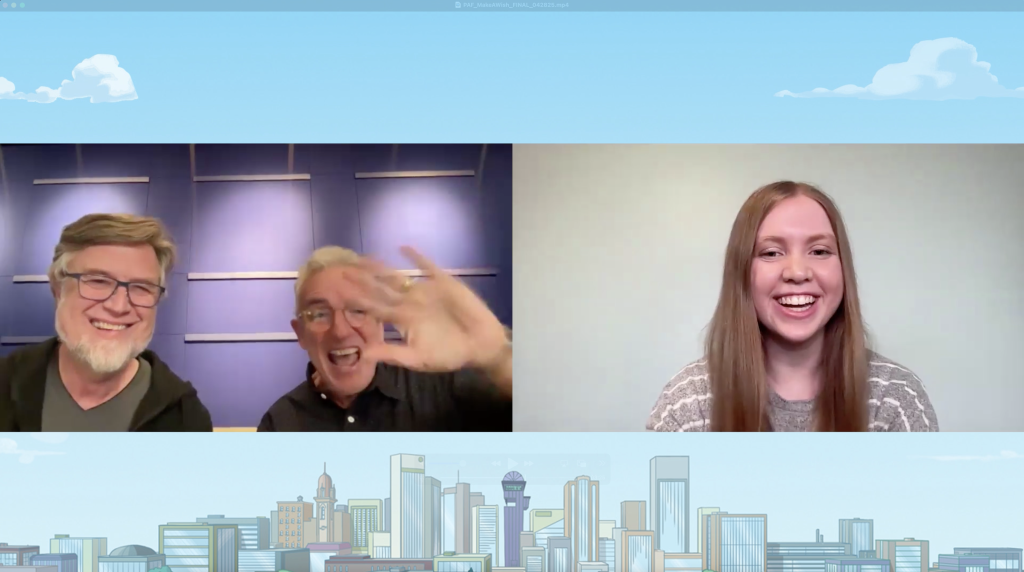 Phineas and Ferb creators Dan Povenmire and Jeff “Swampy” Marsh surprised Amanda, a Make-A-Wish alum, during an interview about her 2012 wish experience with the show. While reminiscing about the impactful wish, Povenmire and Marsh surprised Amanda with an invitation to the Phineas and Ferb premiere event.